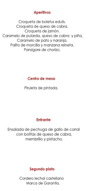 Cascajares, presidida por Alfonso Jiménez, es una empresa líder en la industria cárnica de lujo. Sus productos envasados al vacío y precocinados han dado la vuelta al mundo mediante una acción de internacionalización que le ha llevado a abrir sucursal y centro de producción en Canadá. Desde allí sirve a toda América, desde el Ártico hasta el Antártico. Algunos de ellos protagonizaron con glamour la boda real entre el príncipe Felipe y Letizia Ortiz. Y nos acompañarán ahora en las noches del 28 y 29 de noviembre por expresa voluntad de su emprendedor Jiménez con el menú que ilustra este artículo.