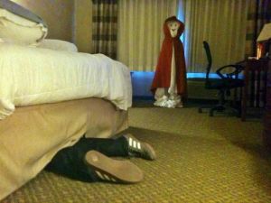 A más de uno, Bert Kreischer le parecerá un delincuente. Su oficio es poner patas arriba las habitaciones de los hoteles por los que pasa. Algunos, muy patas arriba, como vemos en estas imágenes que él mismo sube luego a Twitter, una vez cometido el «delito».