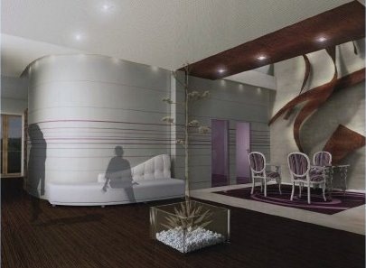 Jesús Castillo Oli, arquitecto: “Al ver ese excéntrico sofá y esas sillas Luis XV (con un digamos contemporaneizante estampado) me viene a la memoria aquella recurrente escena casera de todos los portales de nuestras décadas de mocedad. El espacio, atribuible a una zona de estar o entrada original de un hotel de nuevo cuño, lo encuentro excesivamente ornamentado, con algún problemilla añadido de distribución. Supongo que esas dos puertas pareadas corresponderán a los aseos (?)… Si es así, no creo que ésta sea su mejor ubicación, junto a un lugar evidente de reunión visible para todo el que permanezca allí sentado frente al espectáculo mingitorio. O quizás no me he dado cuenta y las sillas en realidad son una instalación de rabiosa actualidad… (por tanto, se ven pero no se tocan). Las rayas de la pared no aportan nada. Y qué decir del mural que preside las sillas. El gran arquitecto Adolf Loos ya lo apuntó a principios del siglo XX: “la evolución cultural equivale a la eliminación del ornamento del objeto usual”.