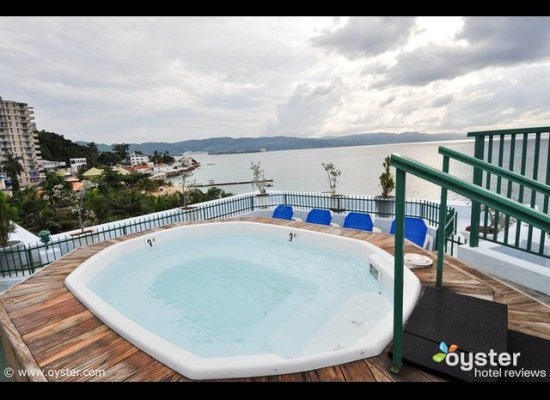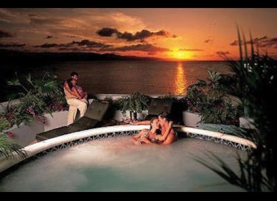 Y qué decir de este arrebol en el Breezes Montego Bay jamaicano, que se parece al jacuzzi de Mr. Heffner en la casa Playboy… Pues no, la verdad de la milanesa (dicho chileno) es esta bañerita sin más pretensiones que el asomarse a la bahía desde su plataforma de madera.