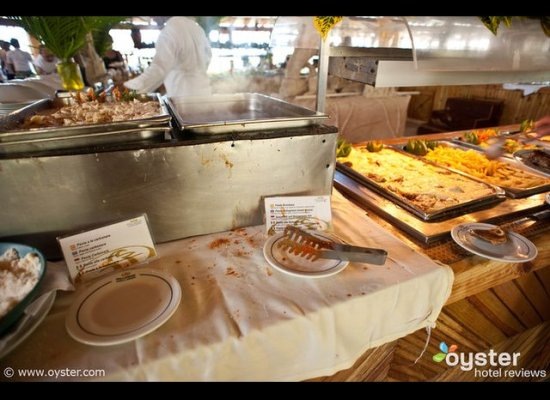 Qué lujuriante comedor el del folleto, ¿verdad? Pertenece al Gran Palladium Bávaro, en la República Dominicana. Pues así se queda después de la cena…