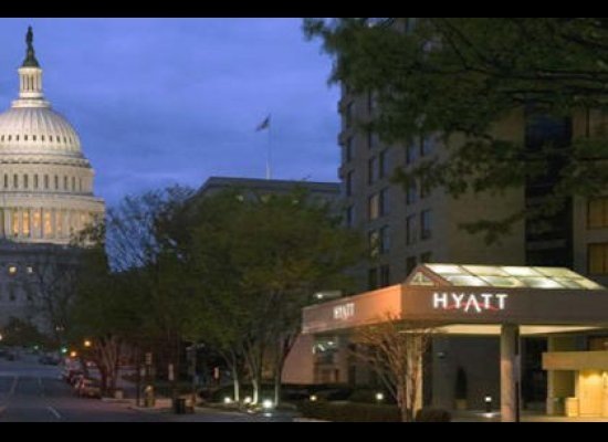 ¿Qué puede esperarse de un hotel Hyatt en Washington? Su emplazamiento junto al Capitolio, ¿no es cierto? La realidad es otra cuando no se usa teleobjetivo. El edificio capitolino se encuentra al cabo de un buen paseo, como queda constancia en la imagen.